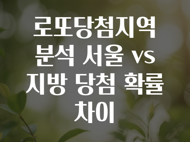 🔹 예시: 서울은 약 1,000만 명(2023년 기준), 지방은 약 3,200만 명. 인구 대비 당첨 비율로 보면 서울이 더 높은 당첨 확률을 기대할 수도 있습니다.