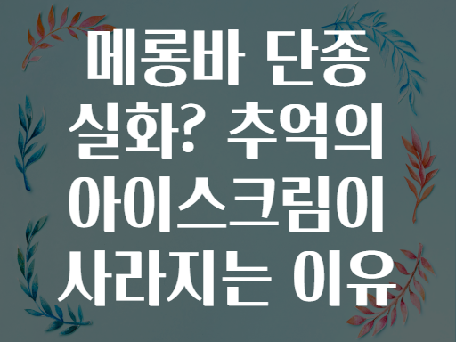 안녕하세요! 오늘은 우리에게 친숙한 추억의 아이스크림, 바로 ‘메롱바’ 단종 소식에 대해 다뤄보려고 해요. 🤔 "과연 메롱바는 왜 단종되었을까요?" 다들 한 번쯤은 학교 앞 분식집이나 편의점에서 사 먹던 그 맛, 그리고 추억 속에 남아있는 아이스크림인데요.