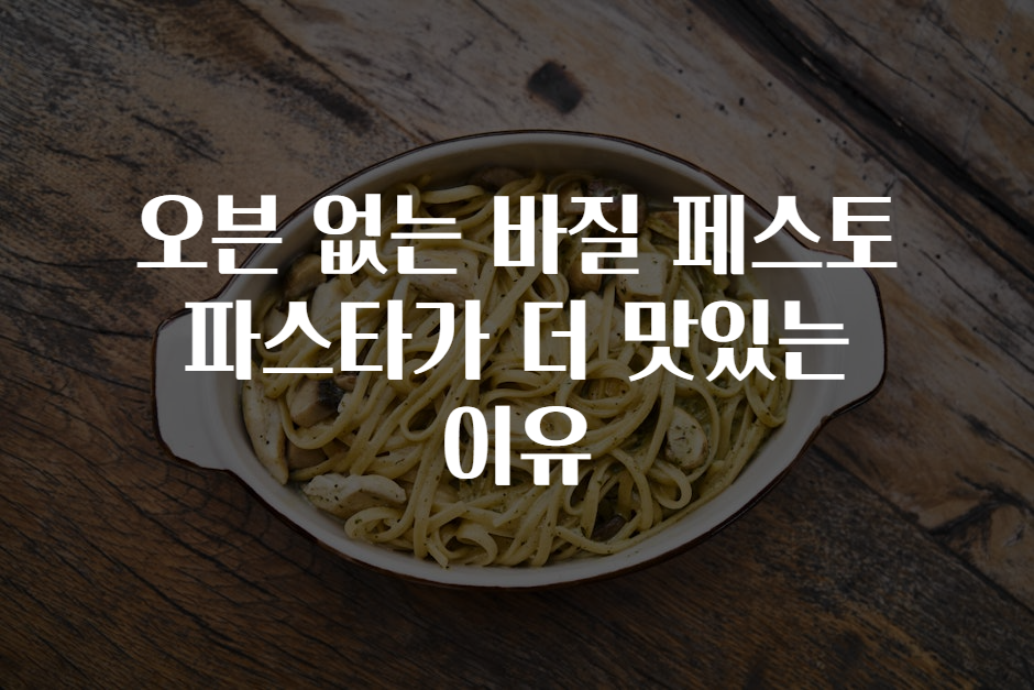 오븐 없이 만들어도 맛있는 바질 페스토 파스타! ☀️ 저온에서 오븐을 사용하는 대신, 신선한 재료의 풍미를 그대로 살리는 동시에 시간도 절약할 수 있습니다.