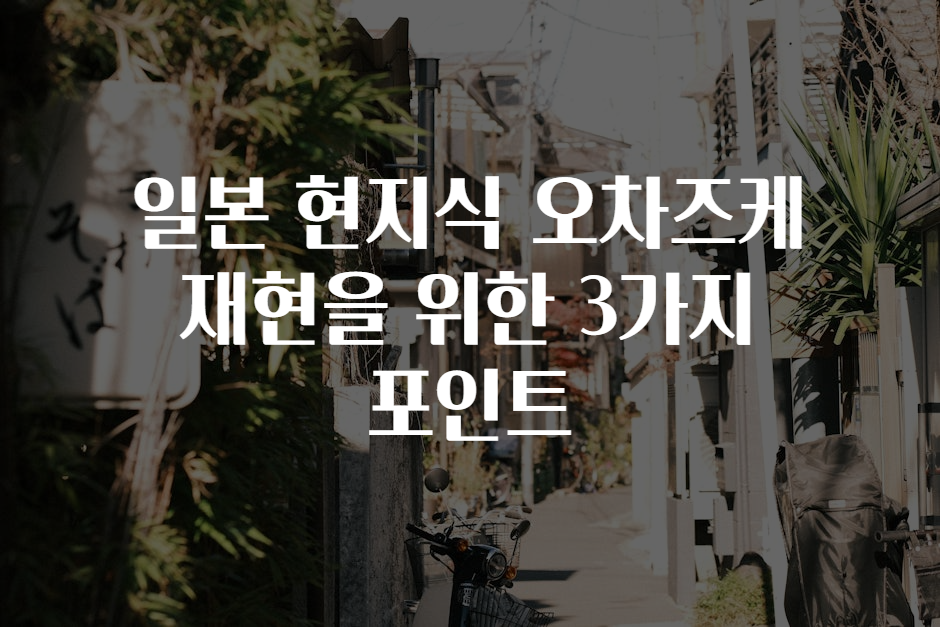 안녕하세요! 일본 요리에 매료된 여러분들을 위해 준비한 이 글에서는 오차즈케(お茶漬け) 재현을 위한 3가지 포인트에 대해 상세히 안내드리려고 해요. 오차즈케는 일본식 차가운 밥에 뜨거운 차나 육수를 부어 먹는 간단하지만 맛있는 요리랍니다. 간단한 재료로도 훌륭한 일본 현지의 맛을 집에서도 쉽게 재현할 수 있답니다. 자, 그럼 시작해볼까요? 🤗